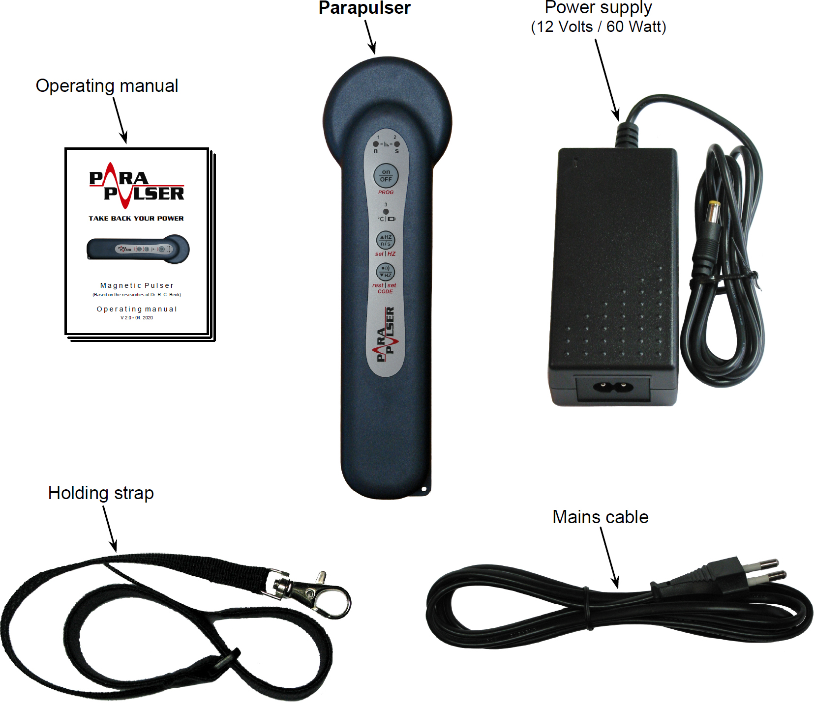 Time saving treatment and application of harmonic frequency patterns due to adjustable pulse frequencies from 1 to 20 Hz (60 to 1200 / min.).